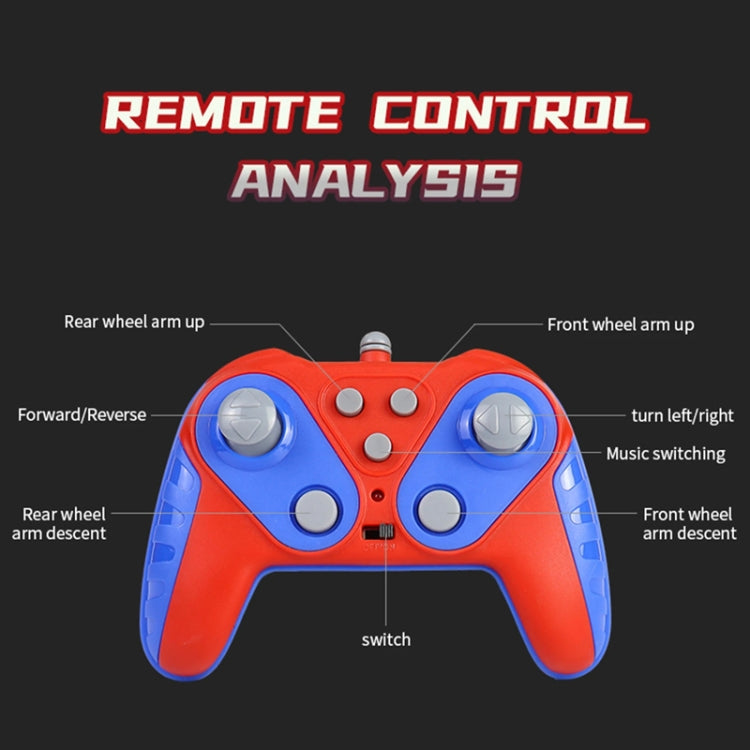 7. Product features: forward, backward, left and right rotation, spray, left and right side traverse, breathing lights, deformation, snake walking, gesture control, twisting drift, double-sided driving
