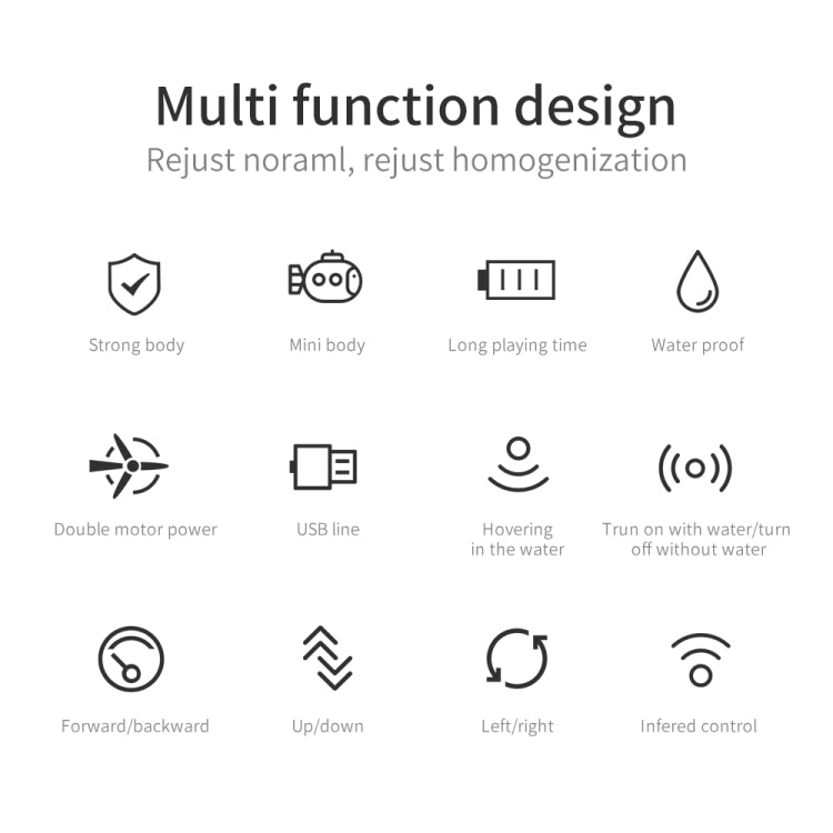 12. Packing list: remote control submarine*1, remote control*1, manual*1, charging cable*1